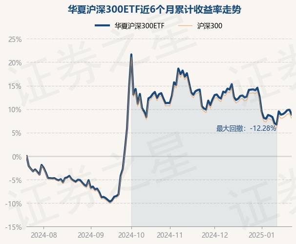 本站消息,1月22日,华夏沪深300ETF最新单位净值为3.9105元,累计净值为1.9201元,较前一交易日下跌0.91%。历史数据显示该基金近1个月下跌3.22%,近3个月下跌3.83%,近6个月上涨8.88%,近1年上涨20.93%。该基金近6个月的累计收益率走势如下图: